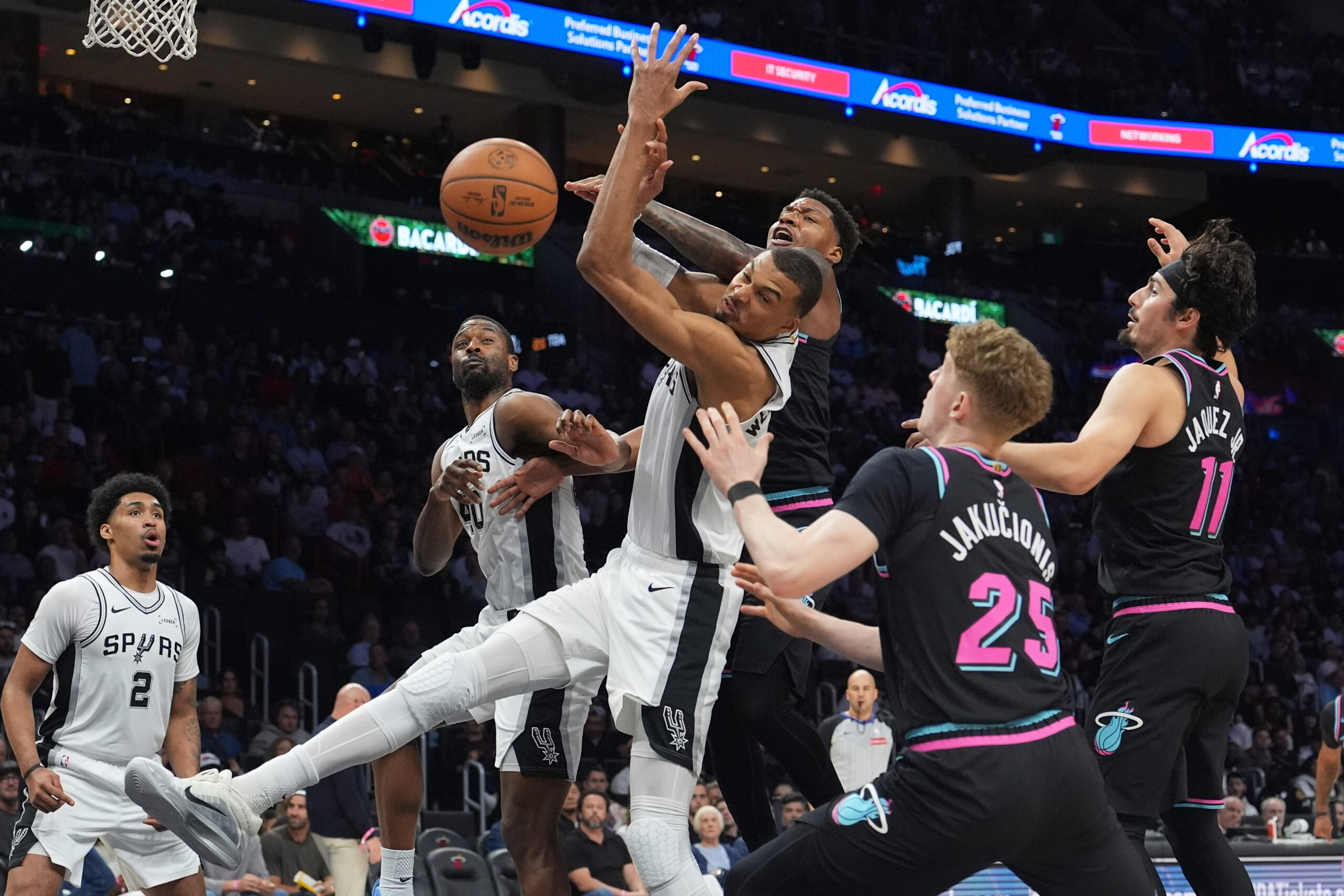 San Antonio Spurs nastavili su sjajan niz u NBA ligi, ostvarivši šestu uzastopnu pobedu savladavši Miami Heat u gostima rezultatom 136:111. Francuski centar Victor Wembanyama briljirao je sa dabl-dabl učinkom – postigao je 26 poena, uz 15 skokova i pet blokada. Ovom pobedom Spursi su ostali u trci za vodeću poziciju na Zapadu, gde trenutno zauzimaju drugo mesto sa skorom od 54-18, dok Oklahoma City Thunder prednjači sa učinkom 57-15.