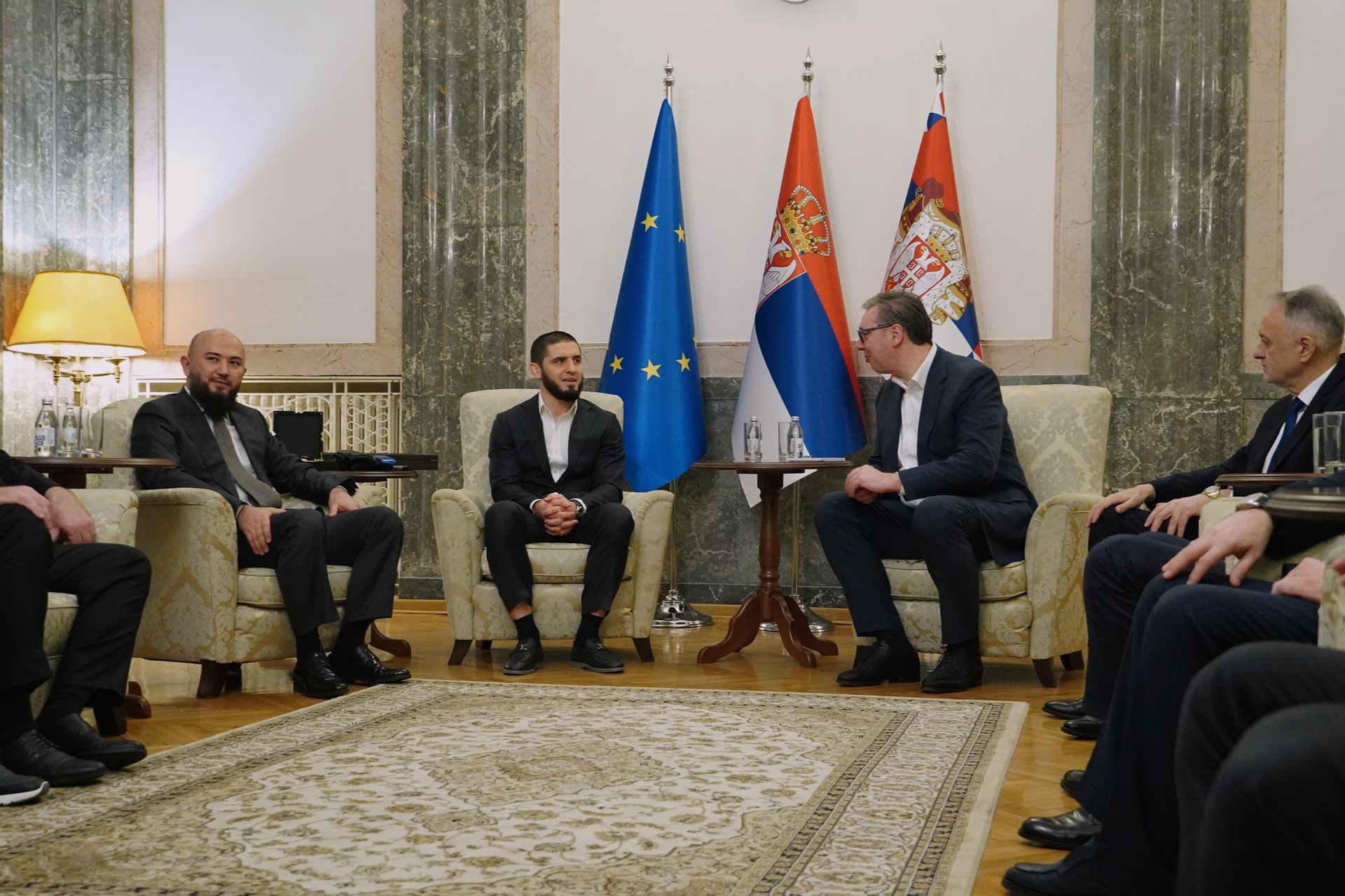 UFC šampion Islam Mahačev posetio je Srbiju i uručio poklone predsedniku Vučiću i ministru Glišiću.